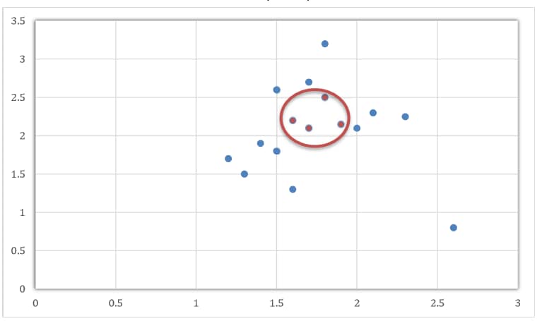 图11:红色圈内的点与蓝色的点二维空间中线性不可分,因此需要通过核函数将各个点映射 到高维度的空间坐标系中