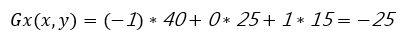 2. 梯度大小的计算。以一个细胞部分区域为例做计算方法讲解(图5),下文为计算像素值为25的中间点的公式。