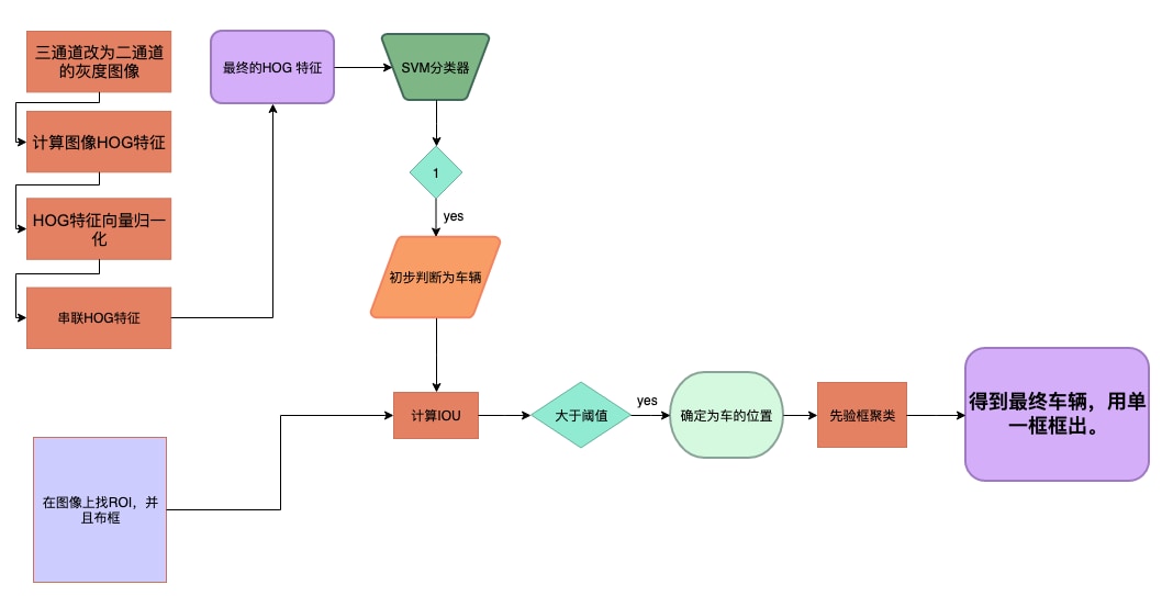 图3:SVM与HOG结合做车辆检测的流程图。