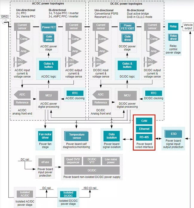 图5:TI直流充电站解决方案主要子系统方框图(图源:TI官网)