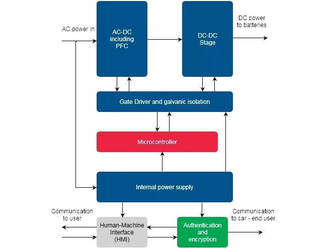 直流充电站设计需要专业知识才能实现如下特性:精确检测和控制直接流向汽车电池的电源输出;高功率密度以支持更快、更高功率的充电标准;高效的PFC和直流/直流转换,以降低损耗;方便用户与系统互动的HMI。