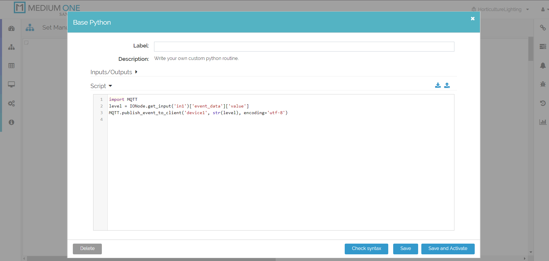14. 双击Base Python模块并在Script部分输入以下代码: