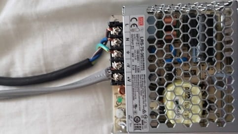 图2:电源接线完成。顶部为 NEMA 15-5P插头,底部为16AWG室外照明电缆,连接到LED驱动板