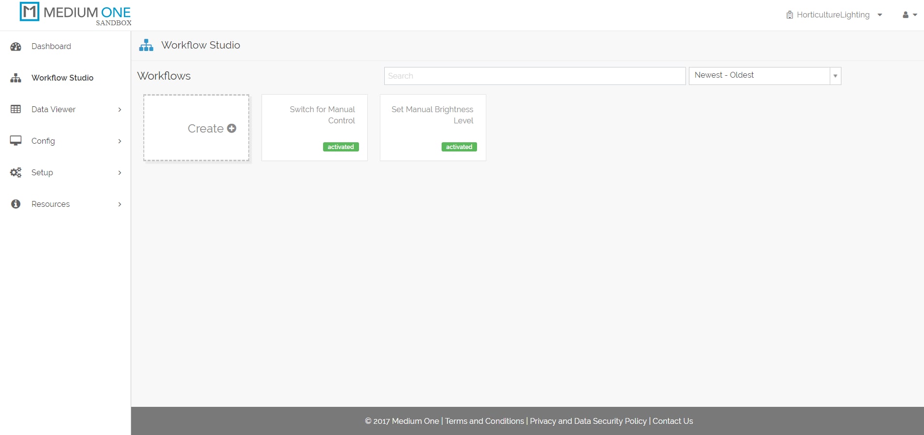 10. 从Medium One仪表板单击Workflow Studio>Create。